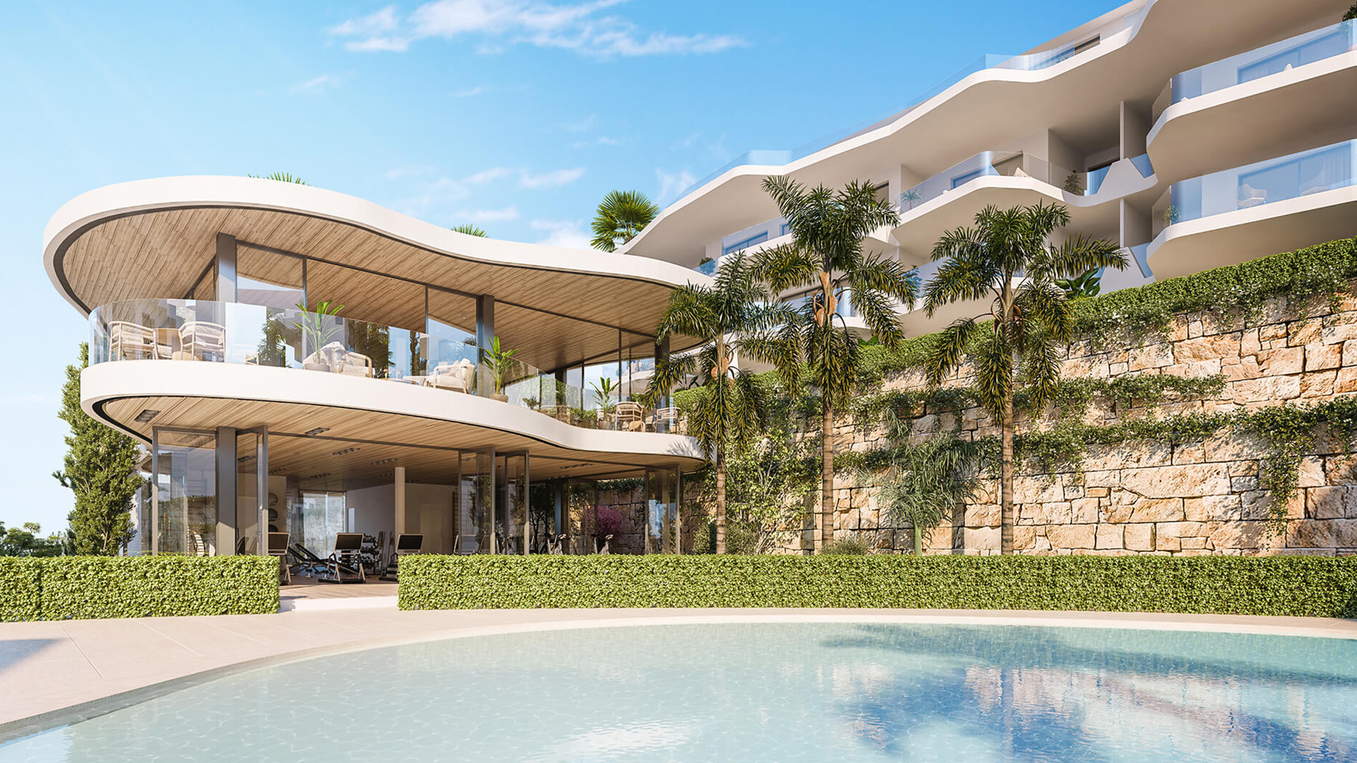 Las Lomas del Higuerón har stora grönområden, simbassänger, omfattande trädgårdar, individuella samarbetsytor och ett fitnesscenter för varje urbanisation.