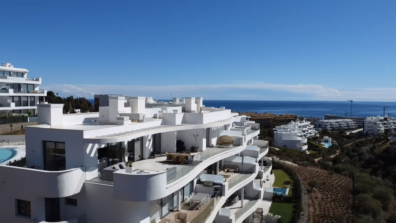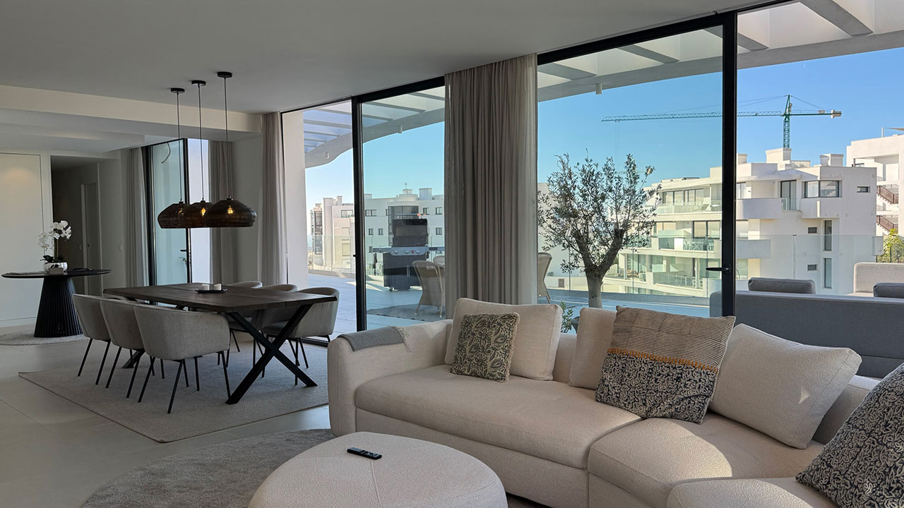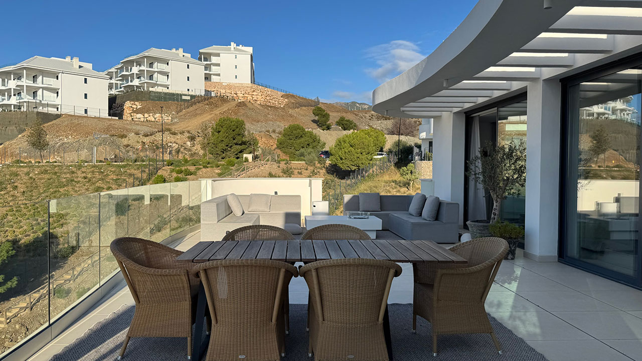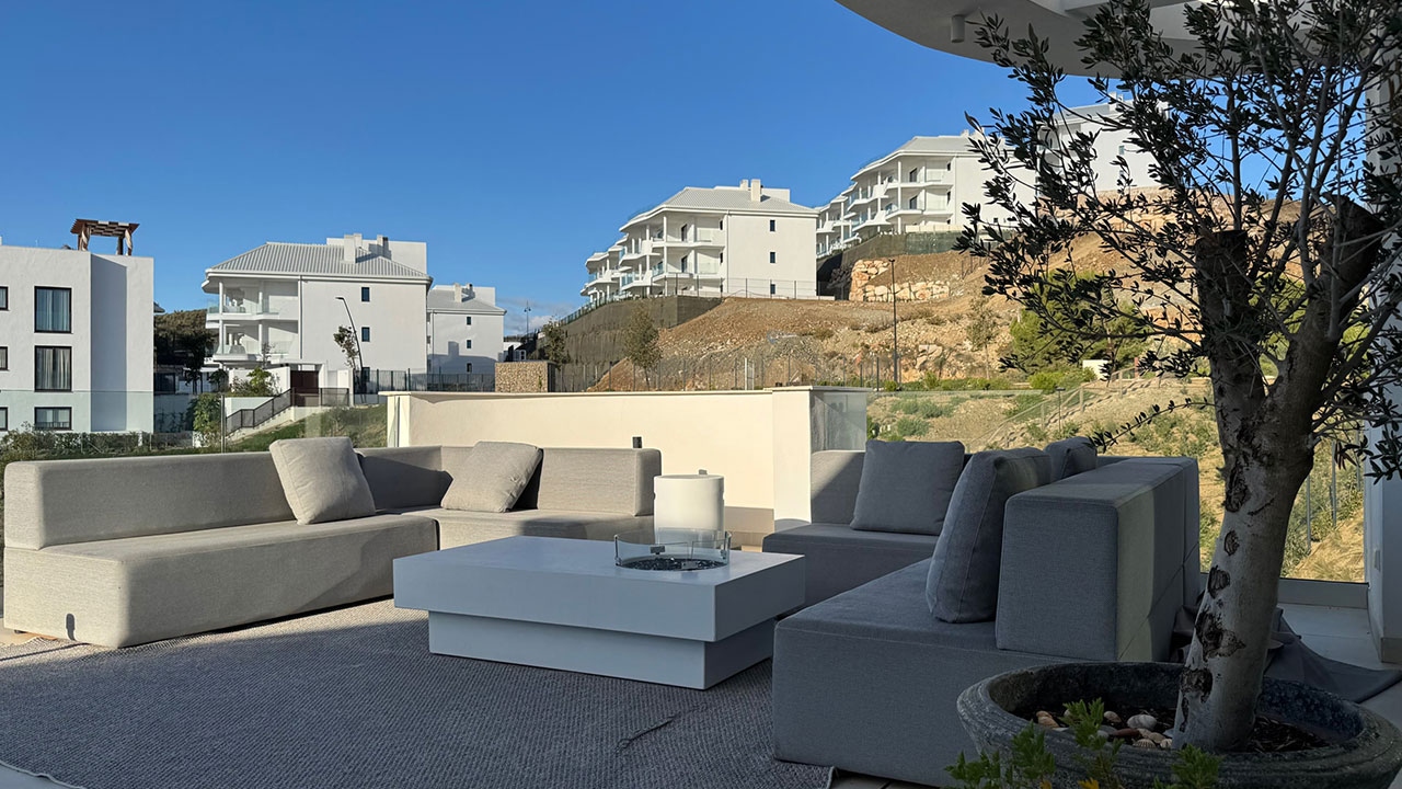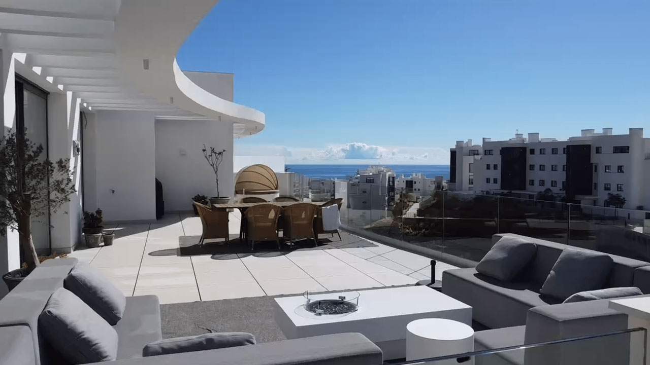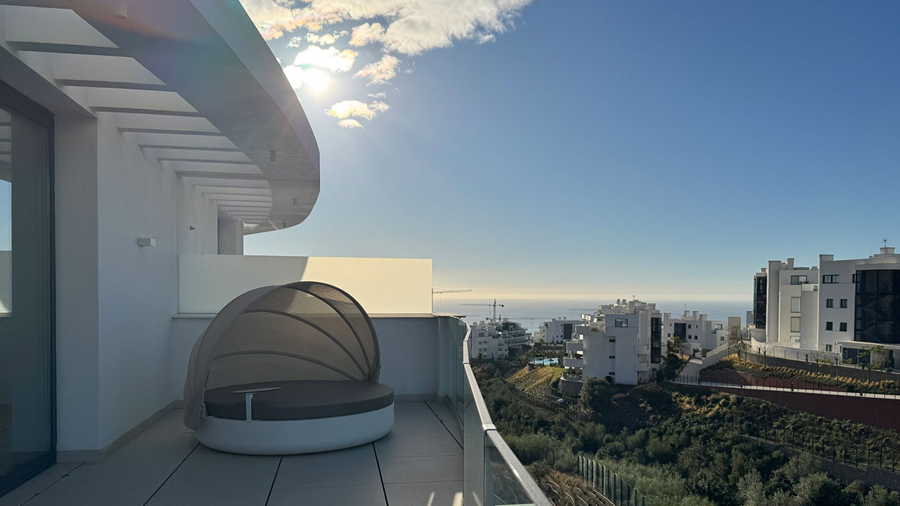 Nu kan vi presentera en unik möjlighet att bli delägare i denna dröm av en inflyttningsklar takvåning. Läget är en av våra favoriter i det lyxiga området Higuerón West eftersom det vetter ner mot grönområdet samtidigt som det erbjuder panoramautsikt och havet i söder.