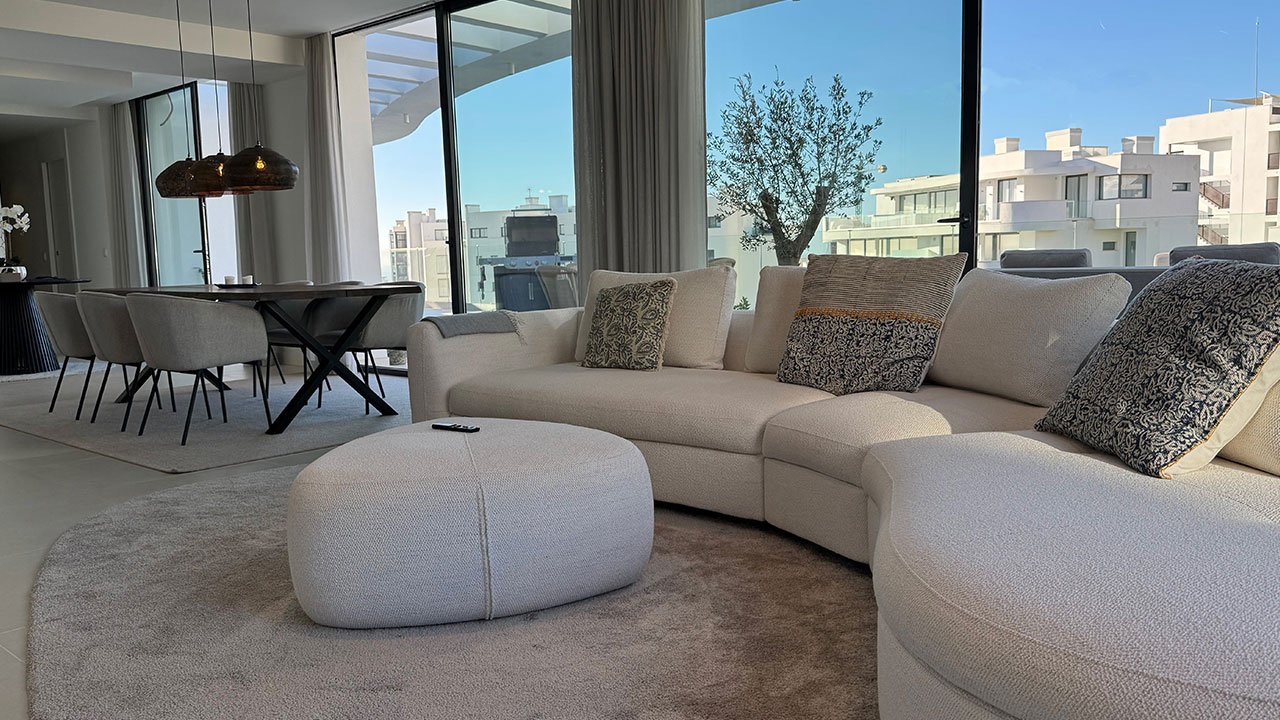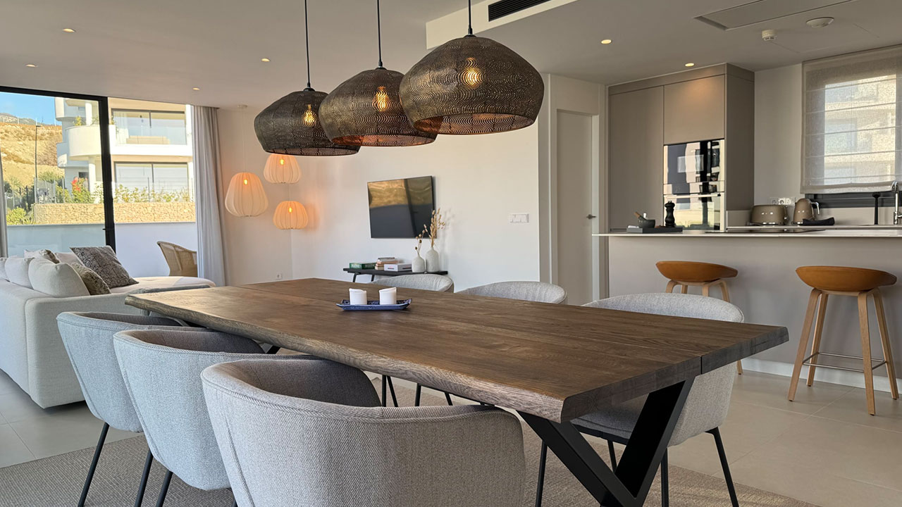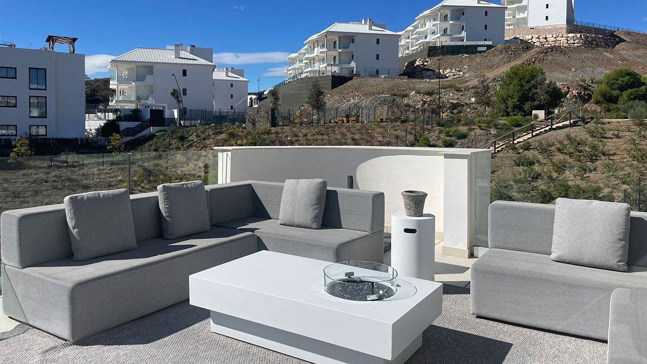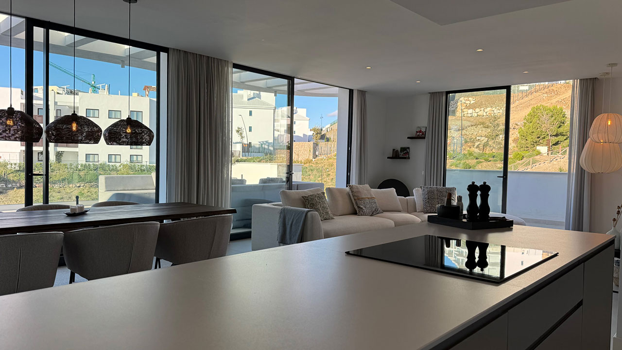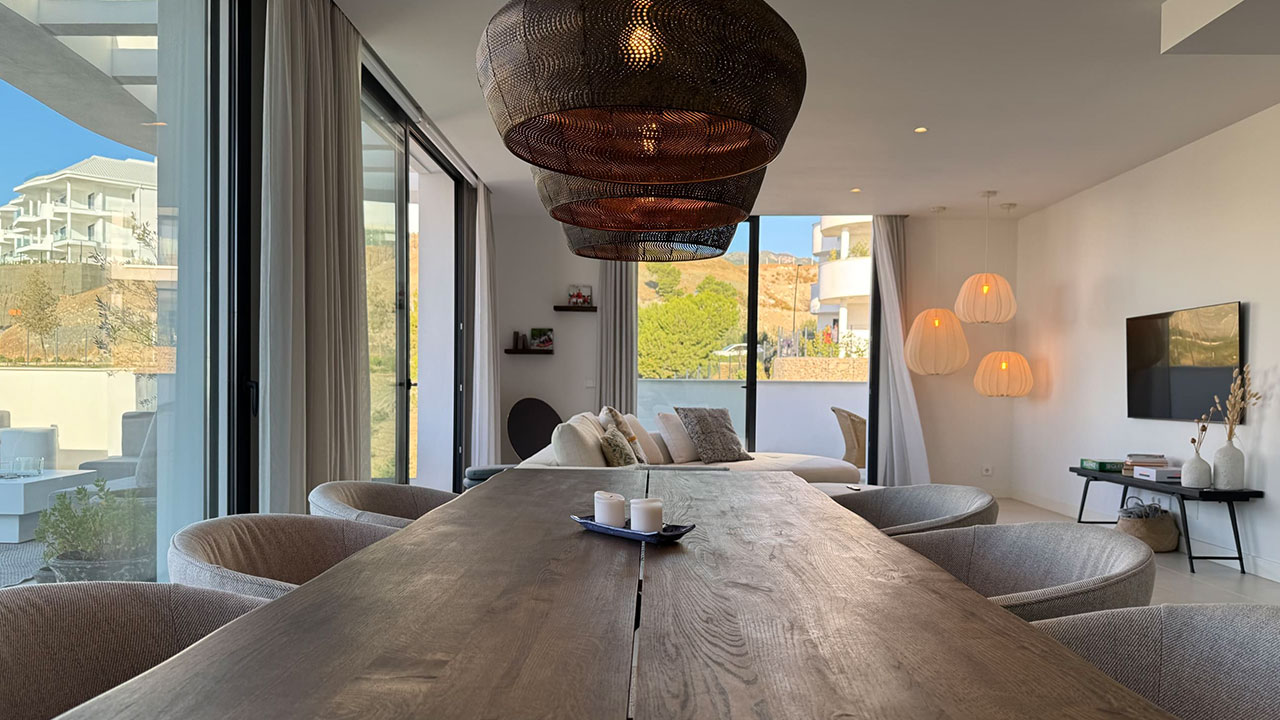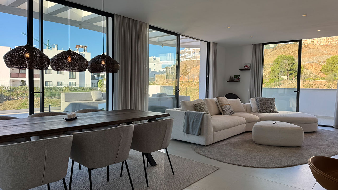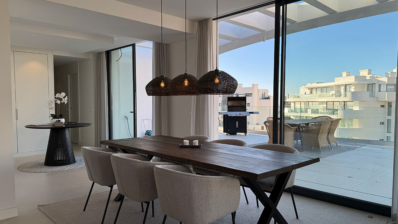 Nu kan vi presentera en unik möjlighet att bli delägare i denna dröm av en inflyttningsklar takvåning. Läget är en av våra favoriter i det lyxiga området Higuerón West eftersom det vetter ner mot grönområdet samtidigt som det erbjuder panoramautsikt och havet i söder.